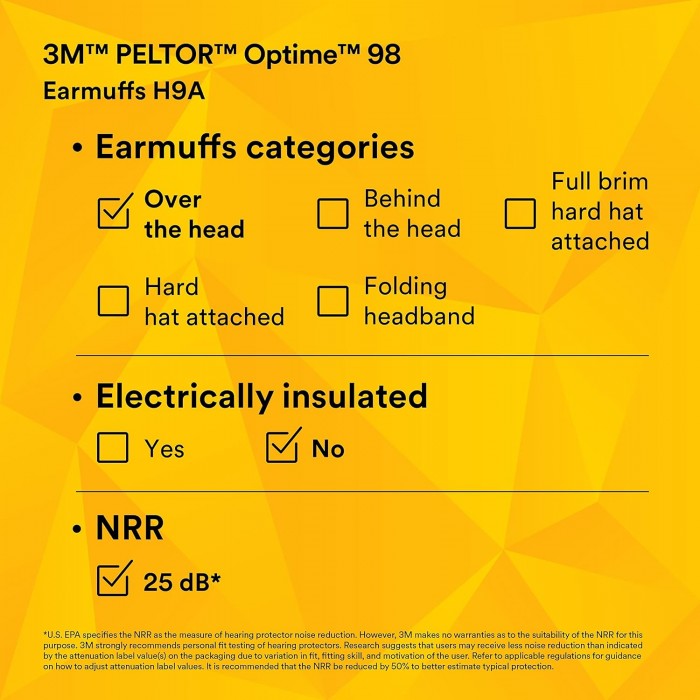 Tags: 3M EP3M-H9A PELTOR Optime 98, H9A Over-the-Head Earmuffs, Yellow, Pack of 1